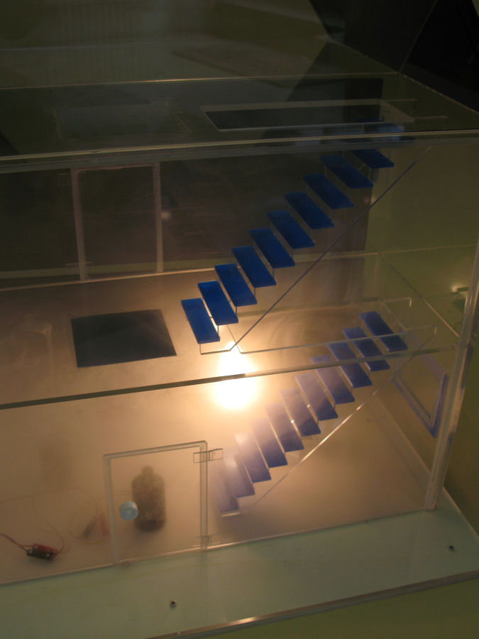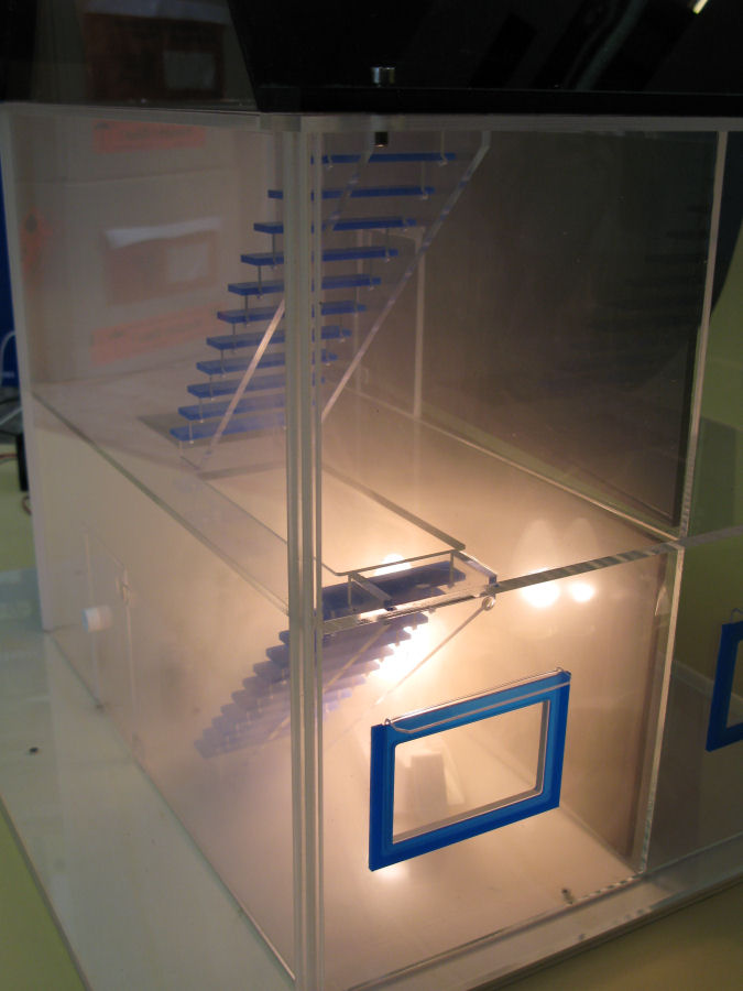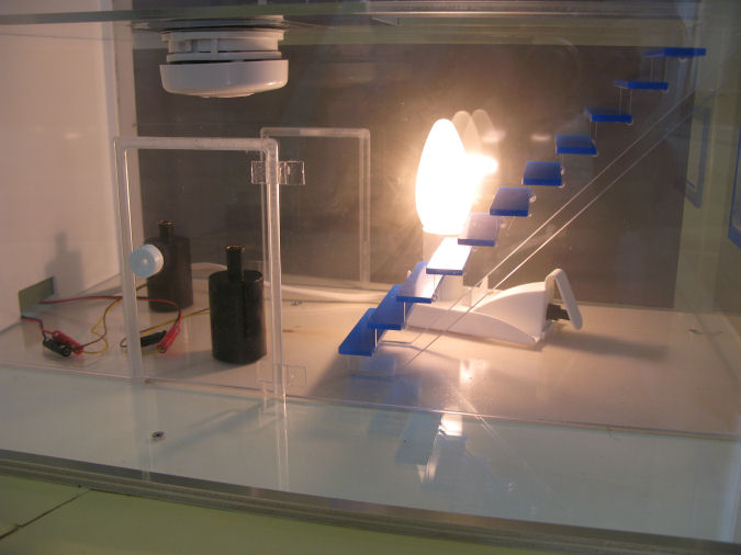 - Zur eindrucksvollen Demonstration wurde ein Rauchhaus entwickelt, welches mit Rauchgenerator und Rauchmelder betrieben wird.