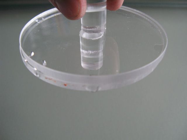 | Bestandteile: | 2 Platten aus Plexiglas (Durchmesser 9 cm, Griff mit seitlicher Aufhängebohrung), Anleitung